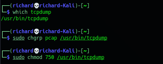 1 | sudo setcap cap_net_raw,cap_net_admin=eip /usr/bin/tcpdump |